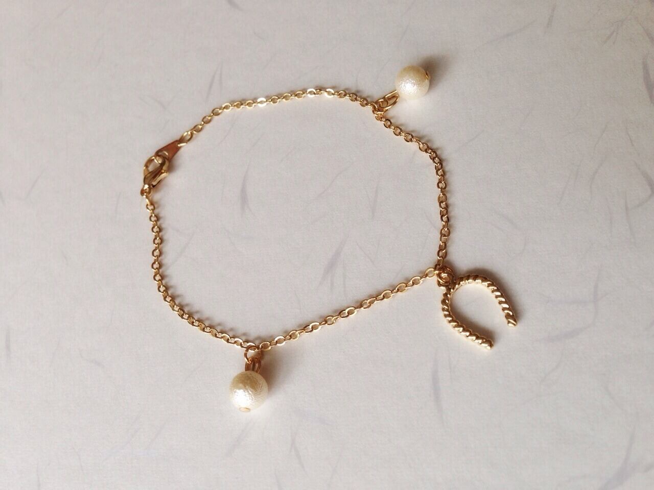 本製品はコットンパールと16KGP素材を使用し身に付けるとhappyになれるようなデザインと願いを込めて一点一点手作りしております。